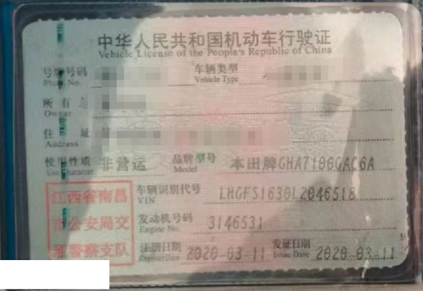 车牌号 赣****** 品牌 本田
