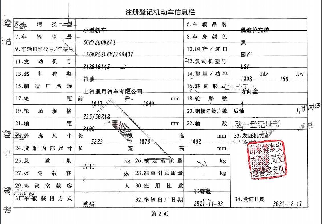 车牌号 鲁****** 品牌 凯迪拉克
