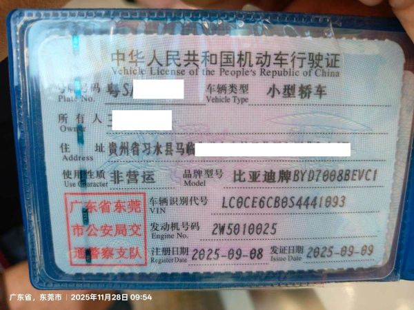 初次登记日期 2025-09-08 车辆名称 比亚迪 秦PLUS