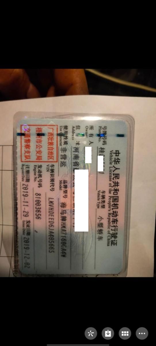 车牌号 桂****** 品牌 海马