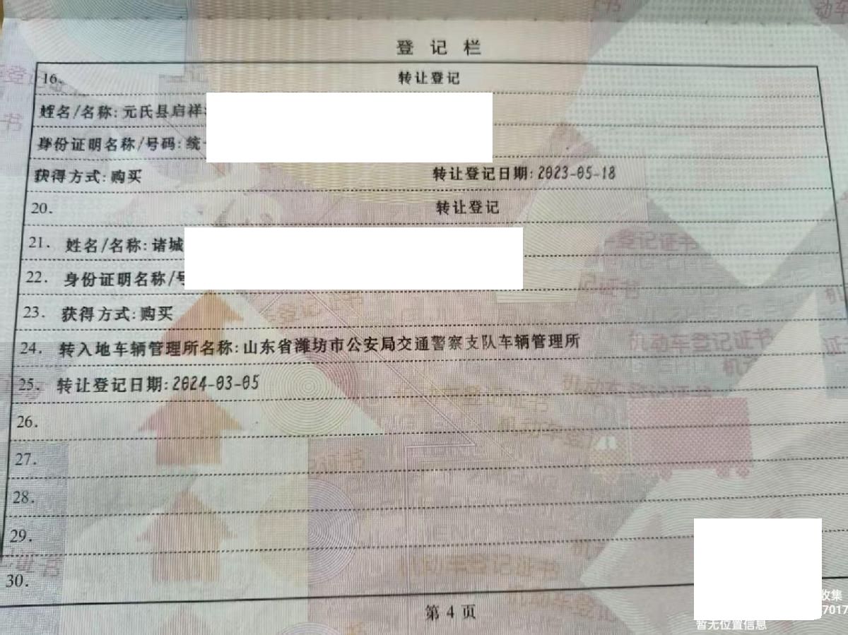 车辆归属地 山东省潍坊市 车辆停放仓库 山东省诸城市