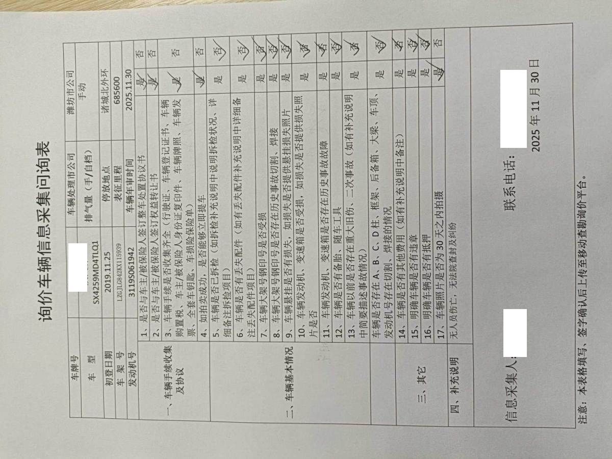 拍卖编号 N202512010483 事故类型 碰撞车