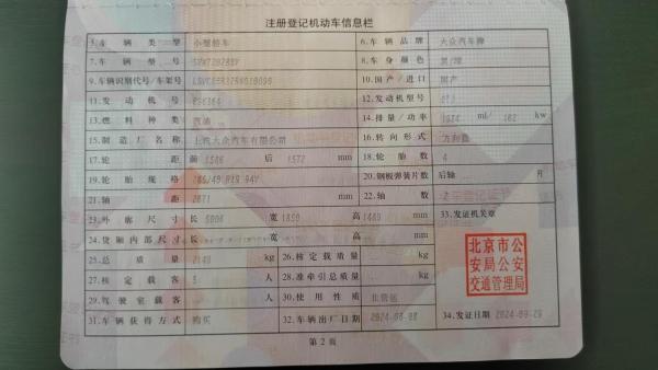 初次登记日期 2024-09-29 车辆名称 大众 帕萨特