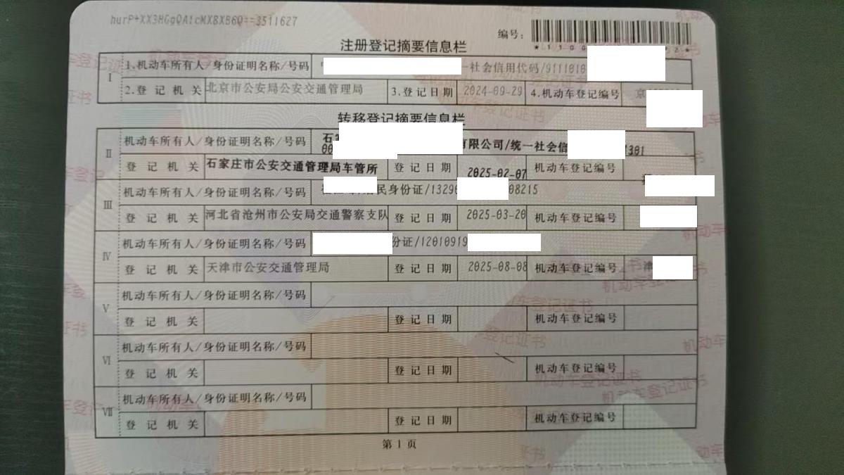 车架号是否受损 未知 使用性质 非营运