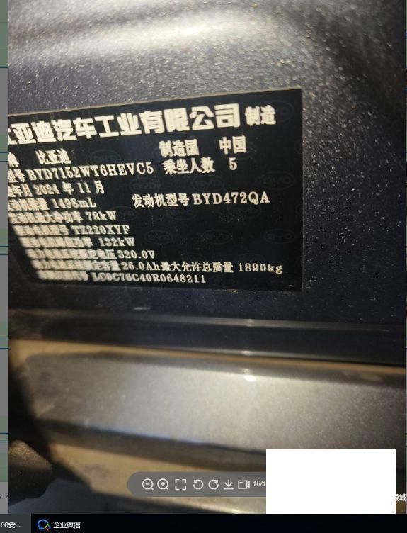 初次登记日期 2024-12-20 车辆名称 比亚迪 驱逐舰