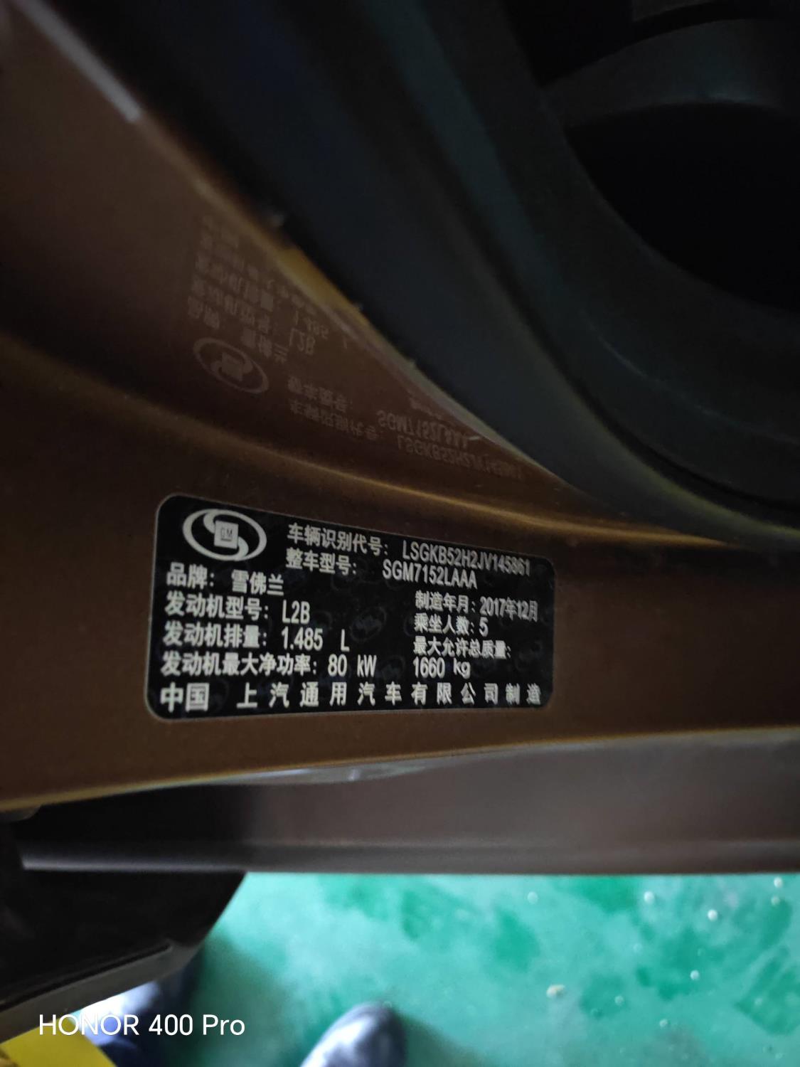 初次登记日期 2018-01-15 车辆名称 雪佛兰 科沃兹