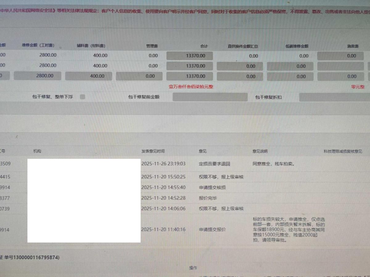 保险金额 ¥18938.2 预估维修金额 14000