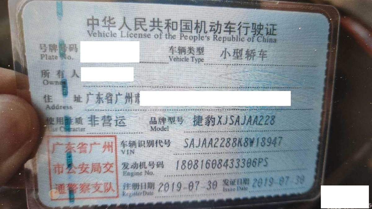 车牌号 粤****** 品牌 捷豹