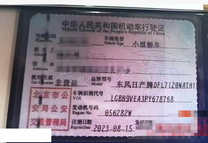 初次登记日期 2023-08-15 车辆名称 日产 轩逸