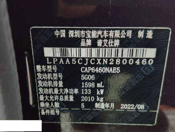 底盘号码 LPAA5CJCXN2800460 变速箱类型 手自一体