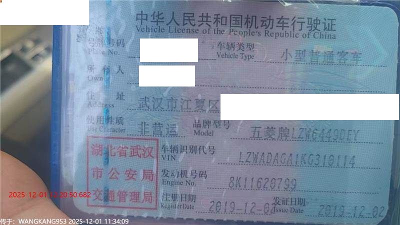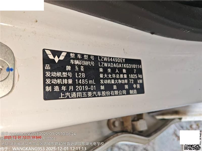 车牌号 鄂****** 品牌 五菱