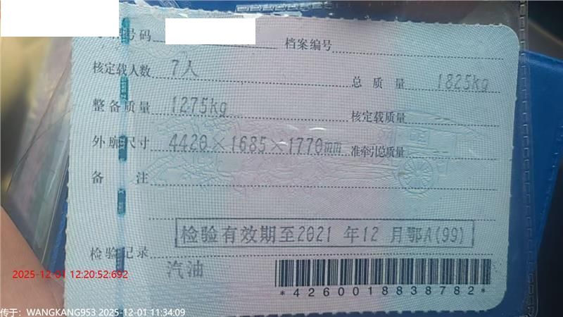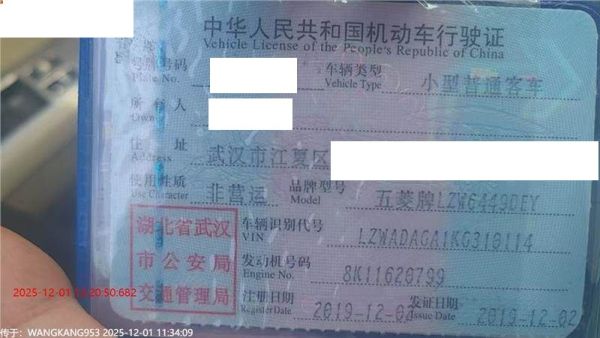 初次登记日期 2019-12-02 车辆名称 五菱汽车 五菱宏光