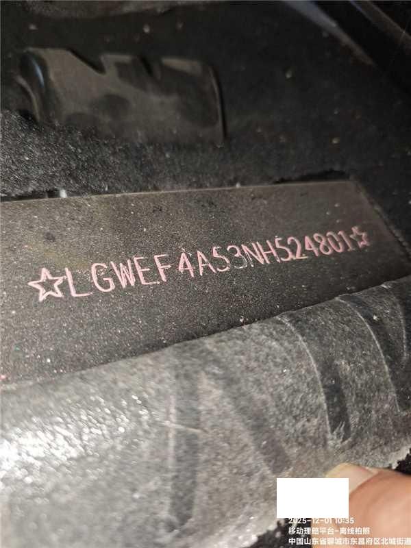 底盘号码 LGWEF4A53NH524801 变速箱类型 自动