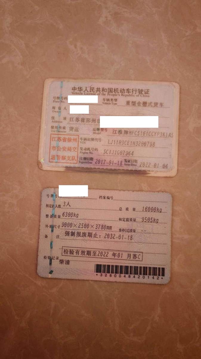 车辆归属地 江苏省徐州市 车辆停放仓库 江苏省邳州市邳州市