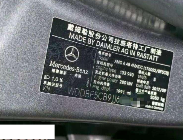 初次登记日期 2018-01-05 车辆名称 奔驰A级AMG(进口)