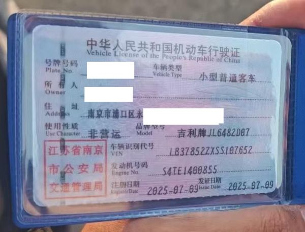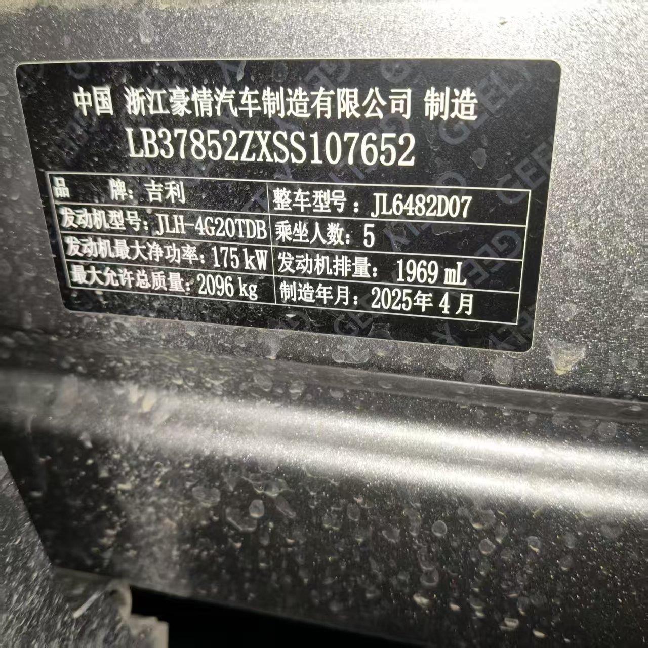 初次登记日期 2025-07-09 车辆名称 吉利汽车