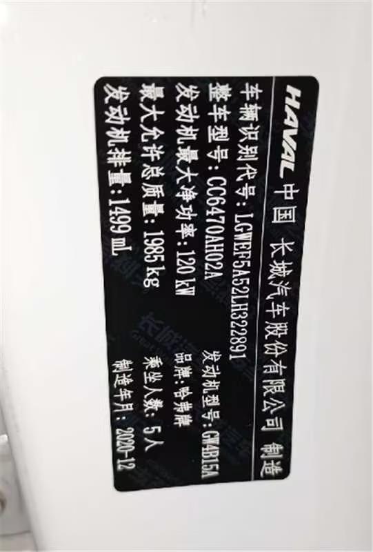 初次登记日期 2021-01-25 车辆名称 哈弗牌