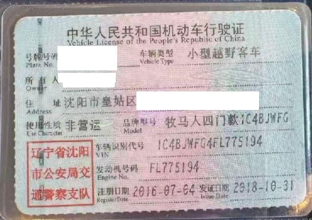车牌号 辽****** 品牌 吉普