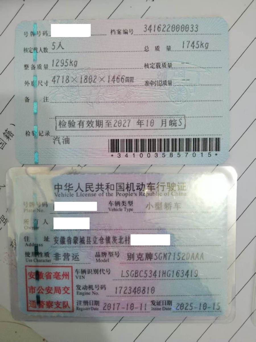 车牌号 皖****** 品牌 别克