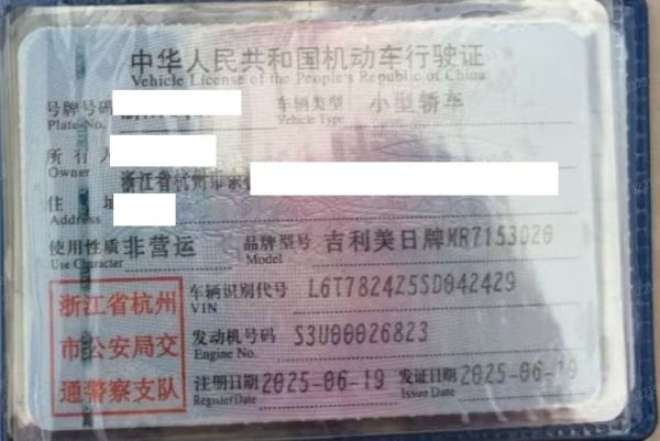 车牌号 浙****** 品牌 吉利