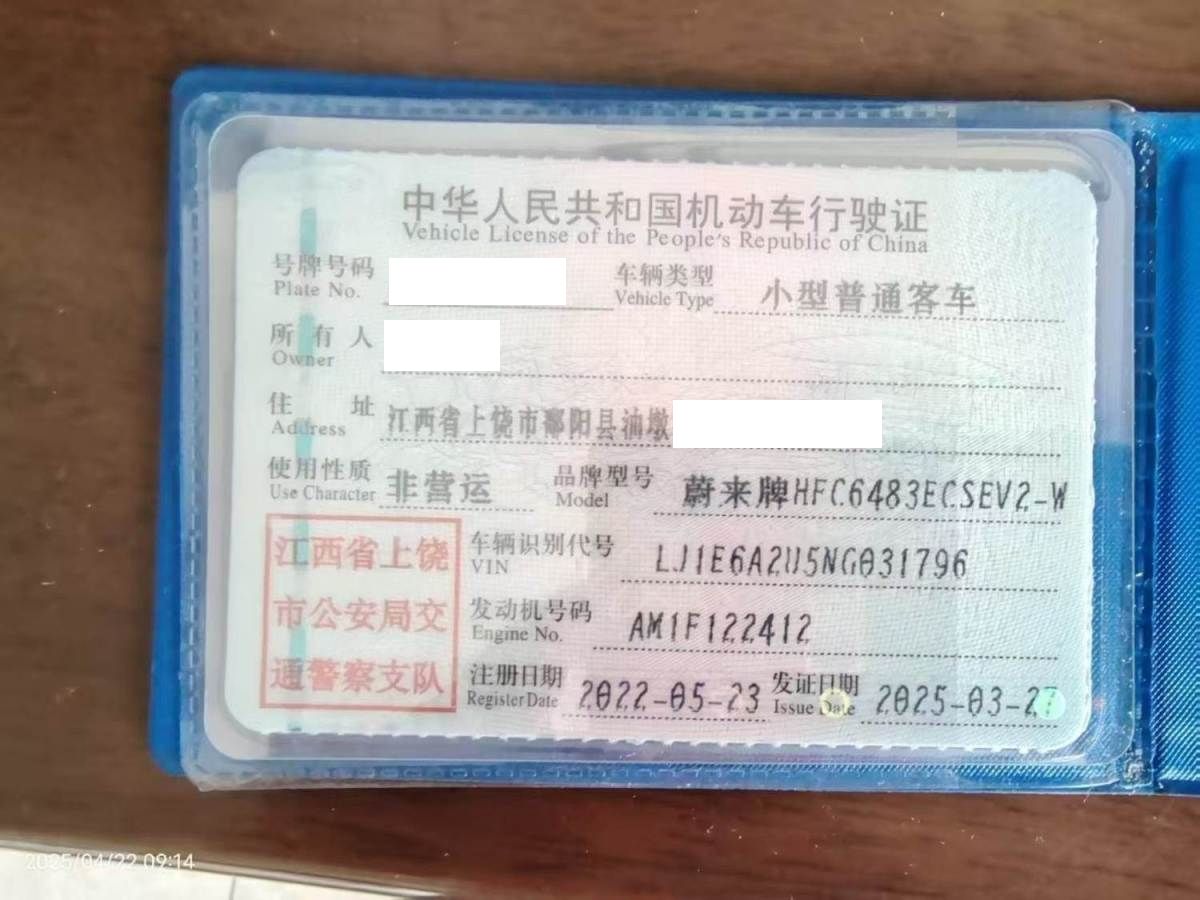 初次登记日期 2022-05-23 车辆名称 蔚来牌