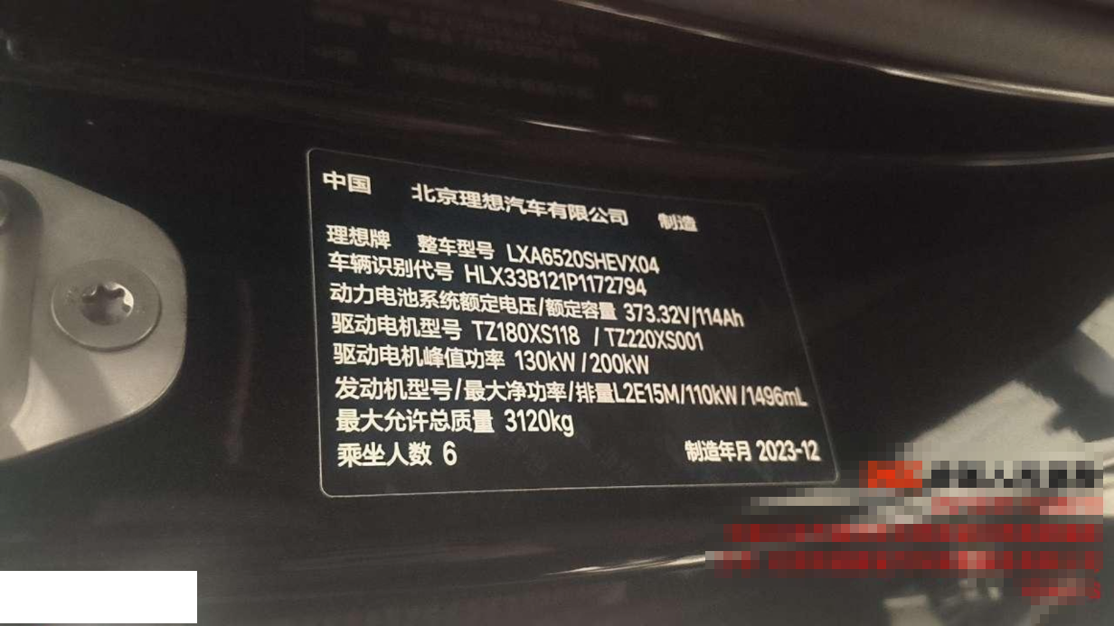 车牌号 京****** 品牌 理想