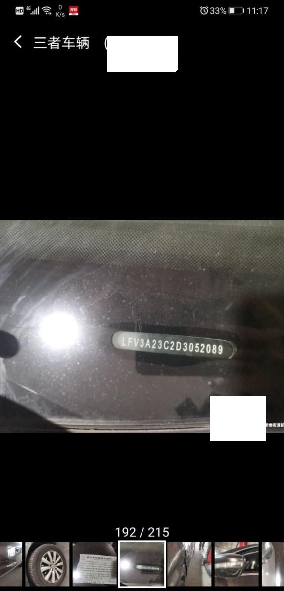 底盘号码 LFV3A23C2D3052089 变速箱类型 自动