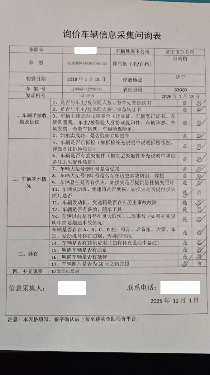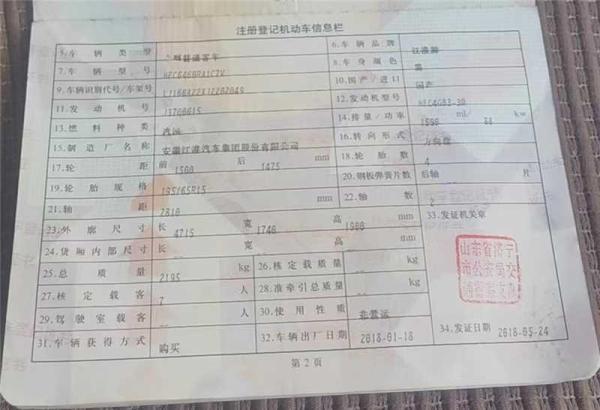 车牌号 鲁****** 品牌 江淮