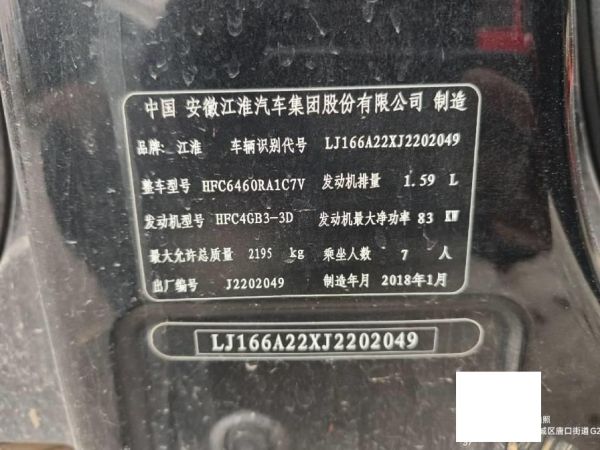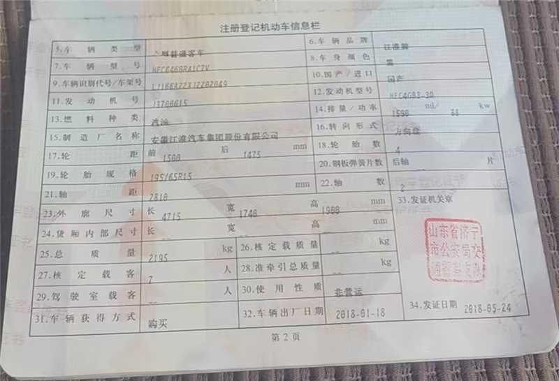 初次登记日期 2018-05-24 车辆名称 江淮瑞风 瑞风M3