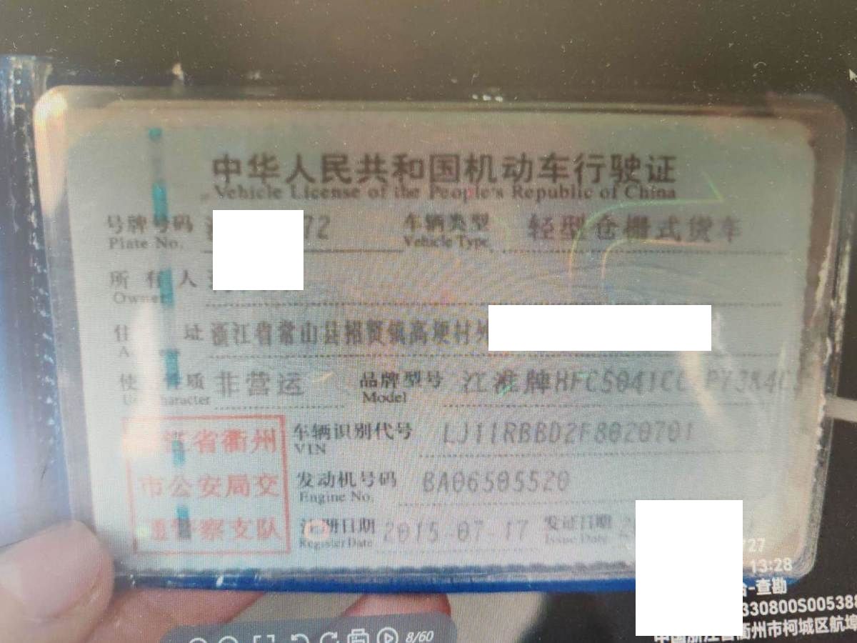车牌号 浙****** 品牌 江淮