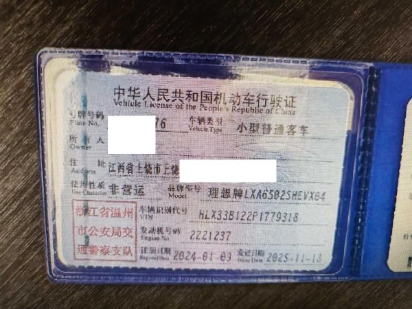 初次登记日期 2024-01-09 车辆名称 理想汽车