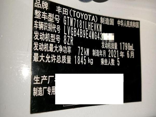 初次登记日期 2021-06-28 车辆名称 丰田 雷凌