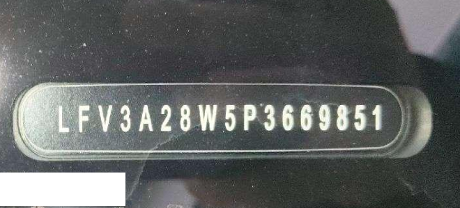 底盘号码 LFV3A28W5P3669851 变速箱类型 自动