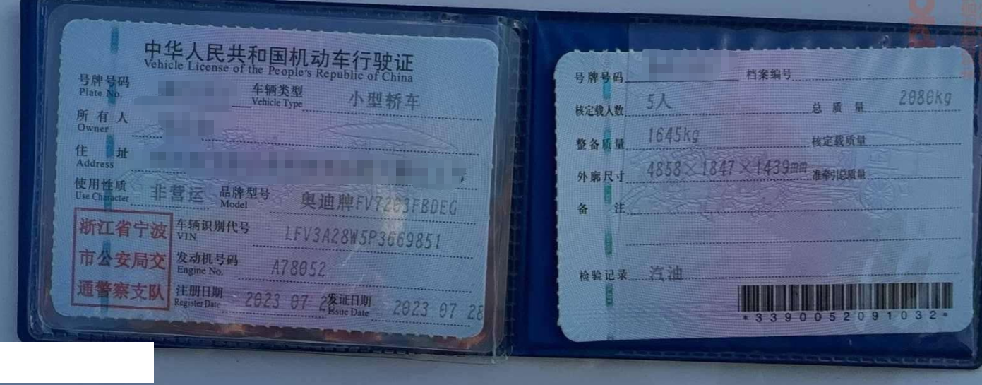 初次登记日期 2023-07-28 车辆名称 奥迪A4L