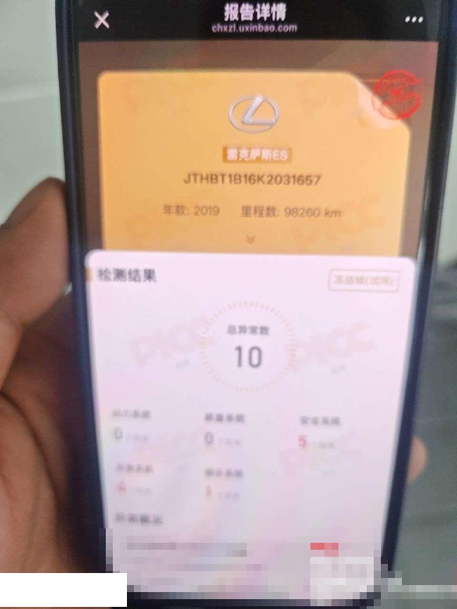 初次登记日期 2019-05-28 车辆名称 雷克萨斯ES