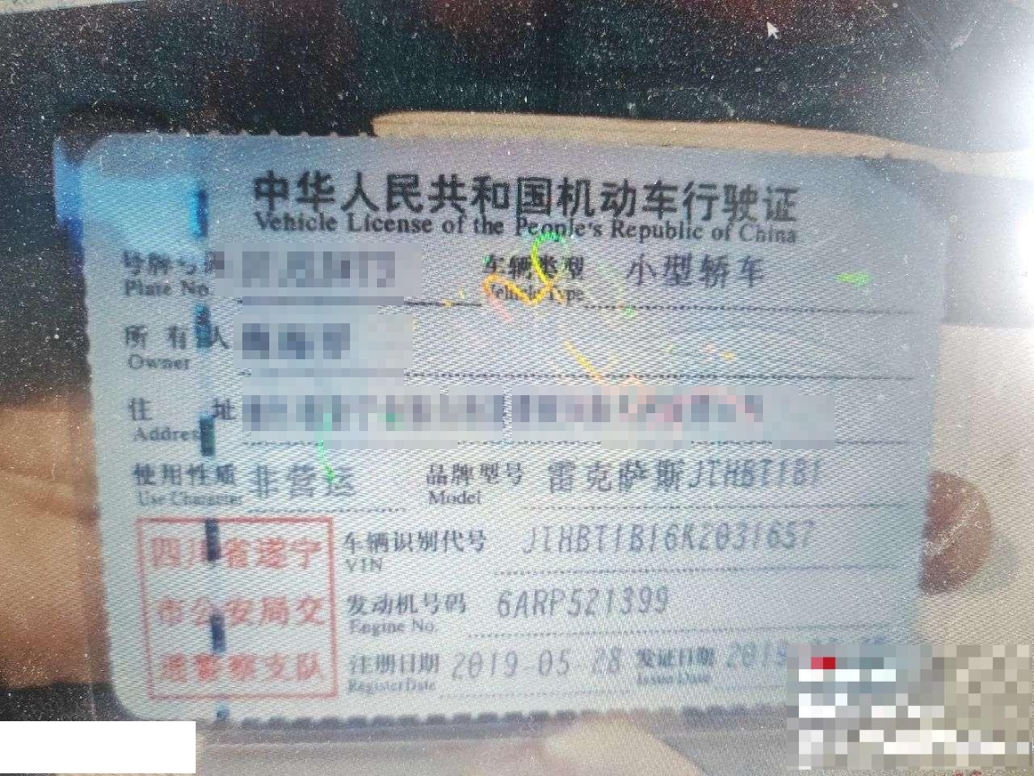 车牌号 川****** 品牌 雷克萨斯
