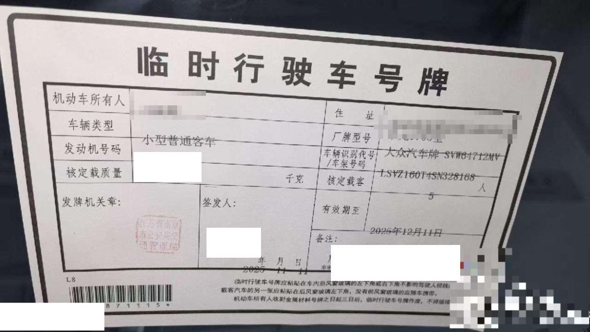 初次登记日期 2025-11-11 车辆名称 大众 途观L