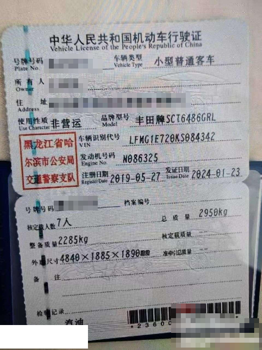 车辆归属地 黑龙江省哈尔滨 车辆停放仓库 黑龙江省哈尔滨