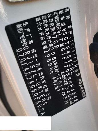 初次登记日期 2019-05-27 车辆名称 丰田 普拉多