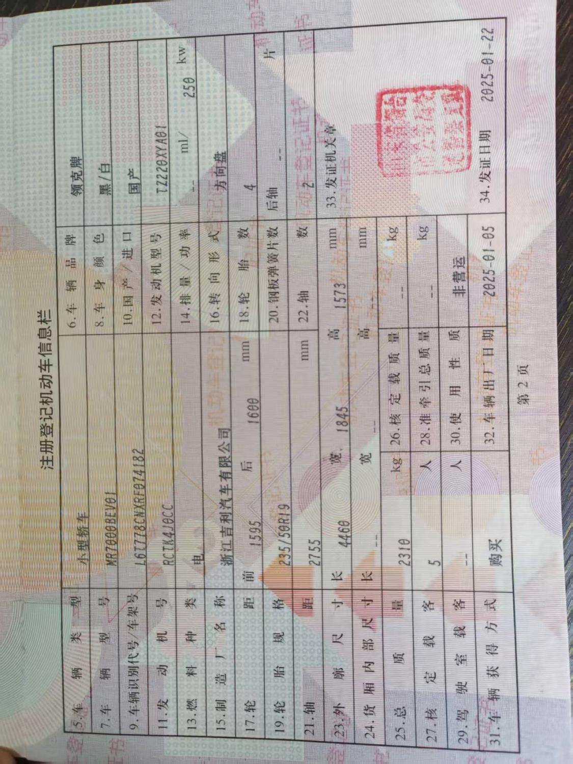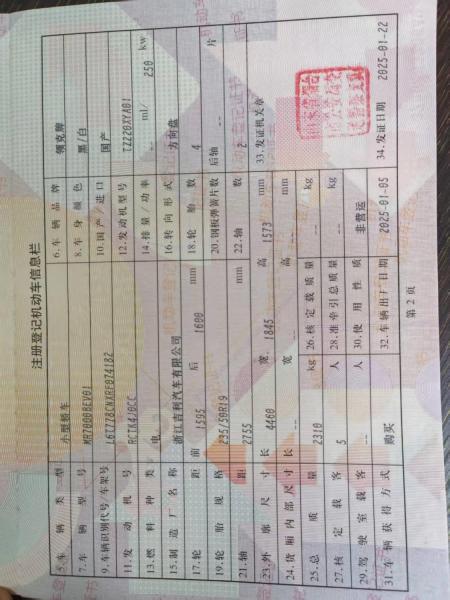 初次登记日期 2025-01-22 车辆名称 领克牌