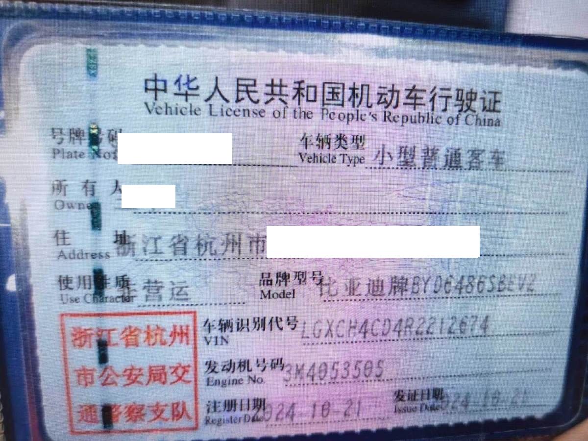 车牌号 浙****** 品牌 比亚迪