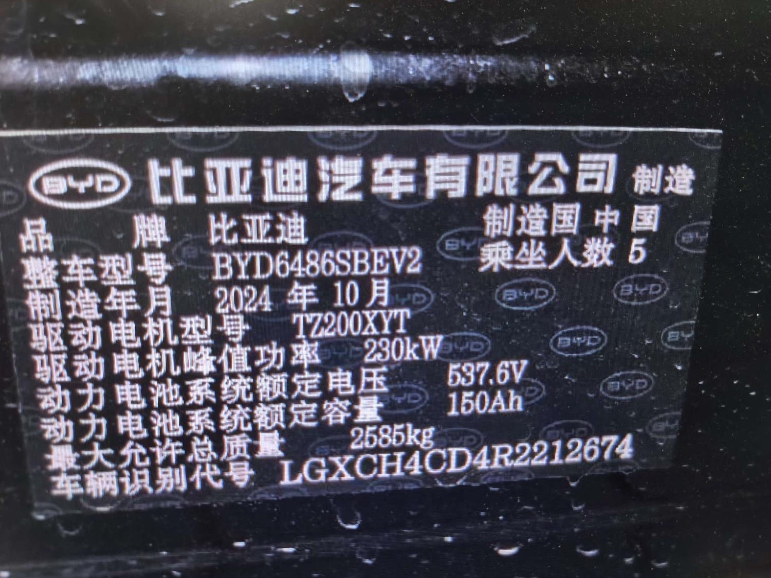 初次登记日期 2024-10-21 车辆名称 比亚迪 海狮