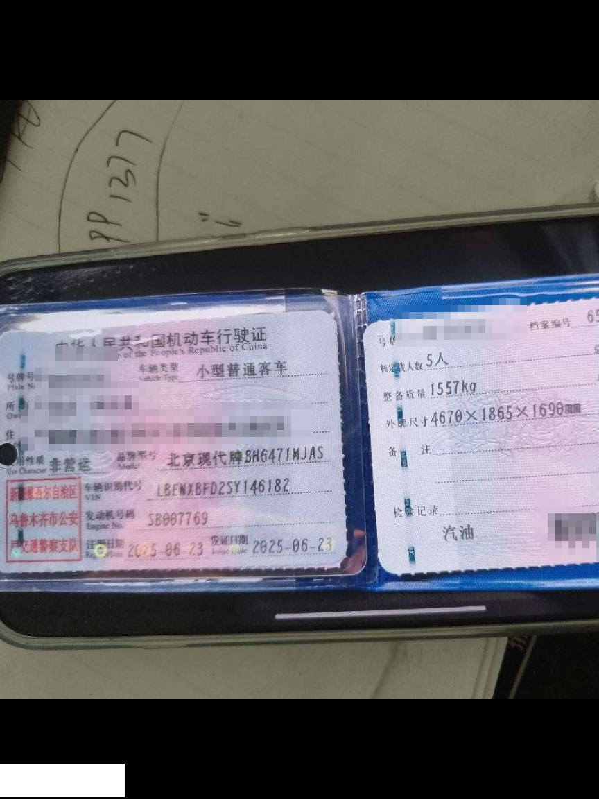 初次登记日期 2025-06-23 车辆名称 现代 途胜