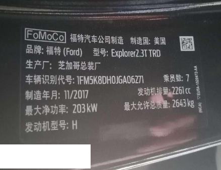 初次登记日期 2019-03-25 车辆名称 福特 探险者
