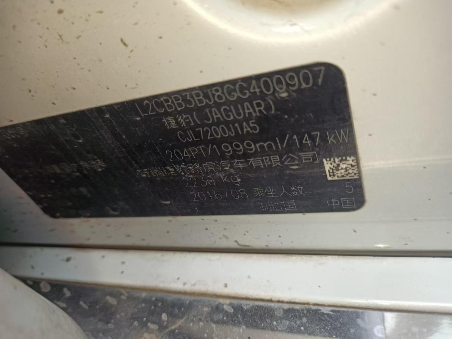 初次登记日期 2016-12-06 车辆名称 捷豹牌