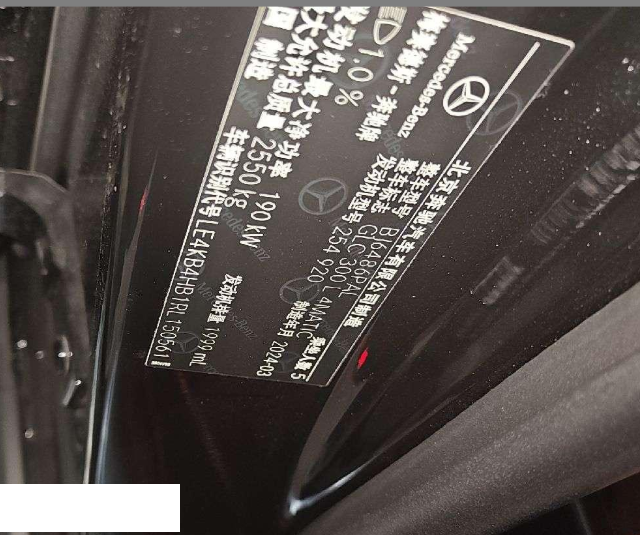 初次登记日期 2024-04-19 车辆名称 奔驰GLC