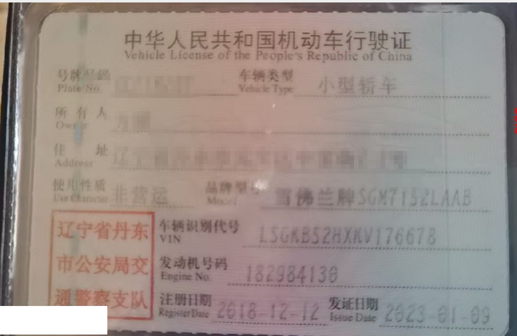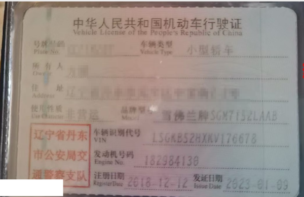车辆归属地 辽宁省丹东市 车辆停放仓库 沈阳