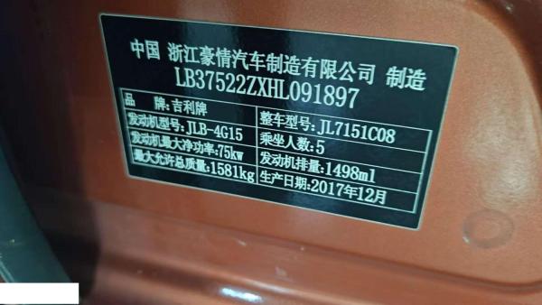 车牌号 蒙****** 品牌 吉利