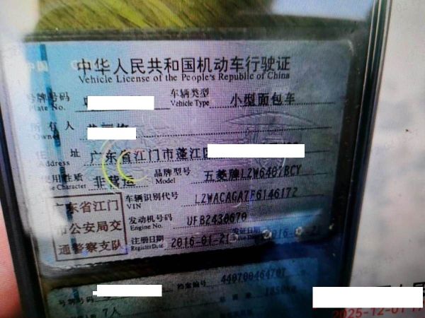 车牌号 粤****** 品牌 五菱