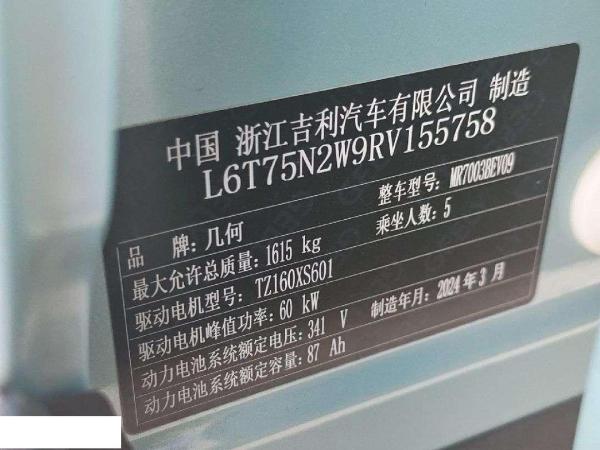 初次登记日期 2024-09-29 车辆名称 吉利几何